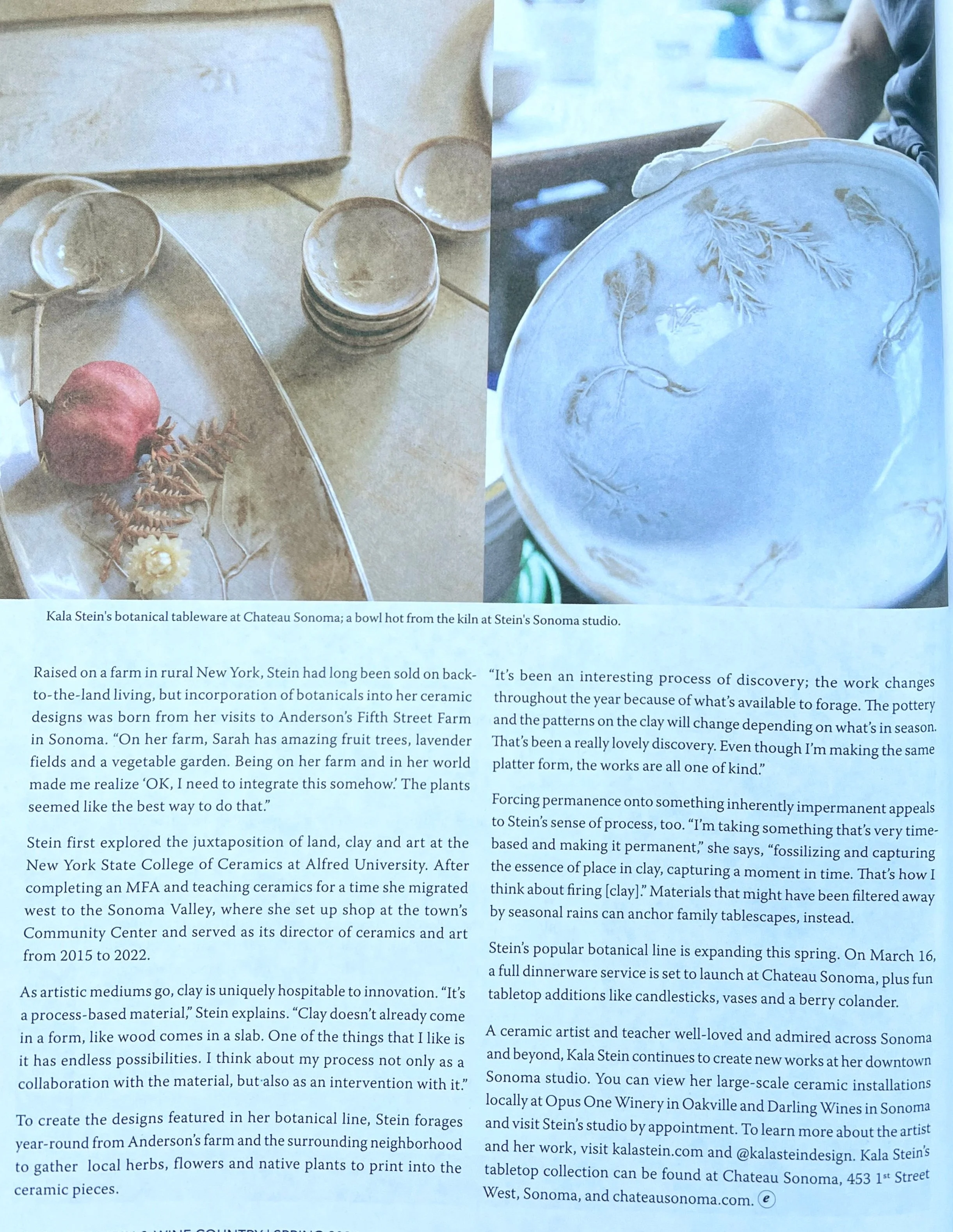 Read more on Kala Stein for Chateau Sonoma featured in Edible Marin’s Magazine Spring 2024. Found on Issue 60, page 18.